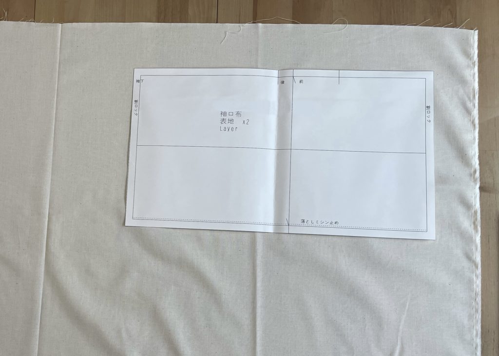 生地と型紙・パターンの地の目線をきれいに合わせてから、