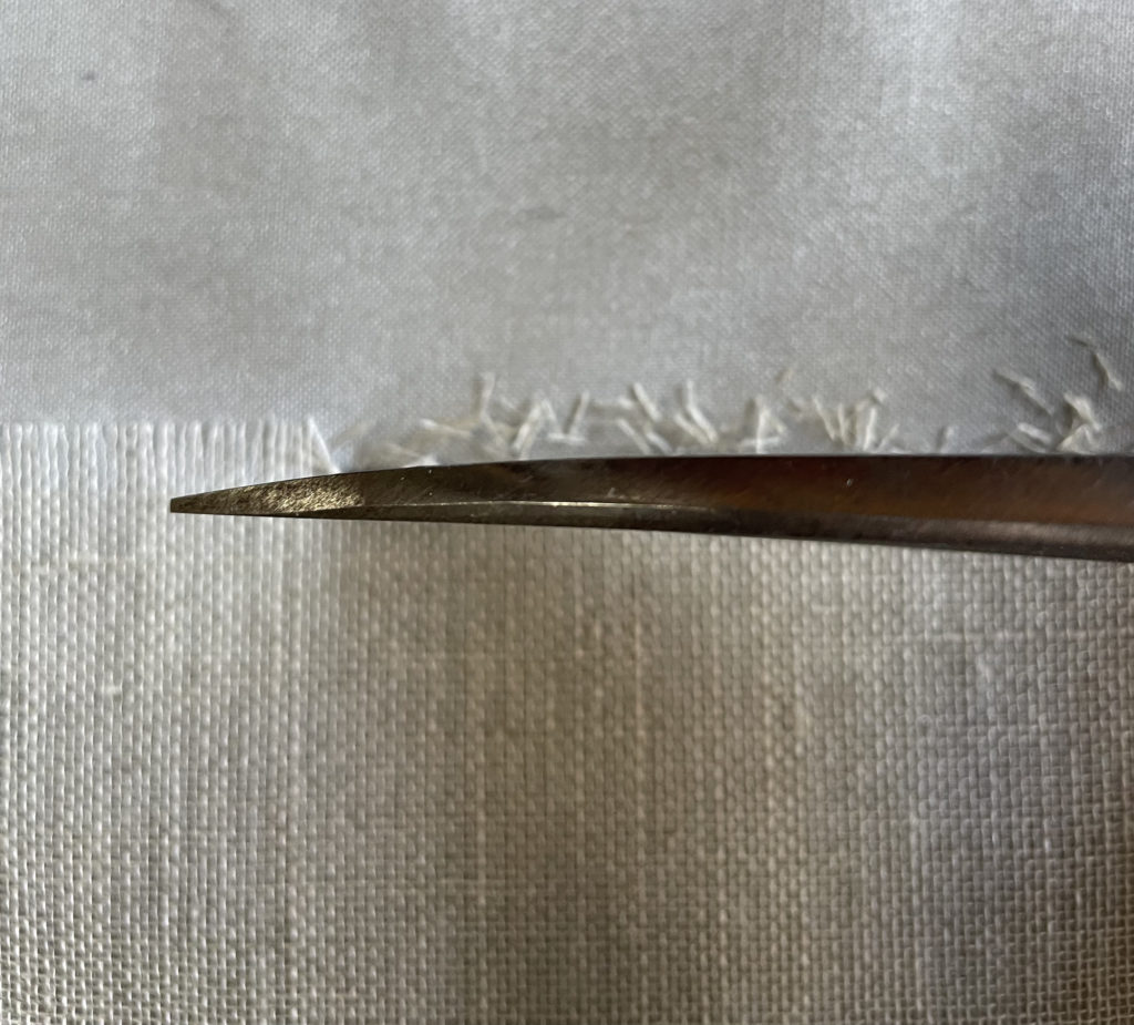 ③端から端まで取ると、地の目に対して直角になる、横糸が見えます。